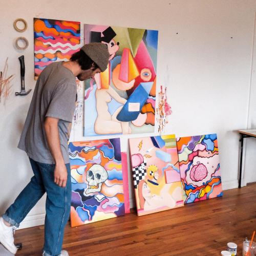 Originally from Tennessee and living & working in Colorado, Heath is a graphic designer, painter, illustrator and idea nurturer. His paintings contain ideas and compositions that speak on human nature, sexuality, formlessness, time, desire, and attainment. His subjects bounce of of his subconscious with a curiously explosive nature and a strong connection to an idealized environment.